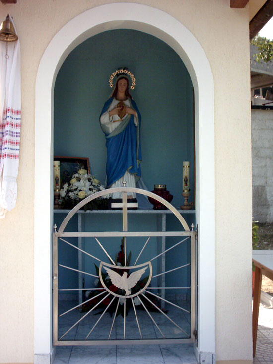 Kip Marije, koji krasi kapelicu, kupljen je u Zagrebu i ukrašen "krunom" koja noću svijetli.